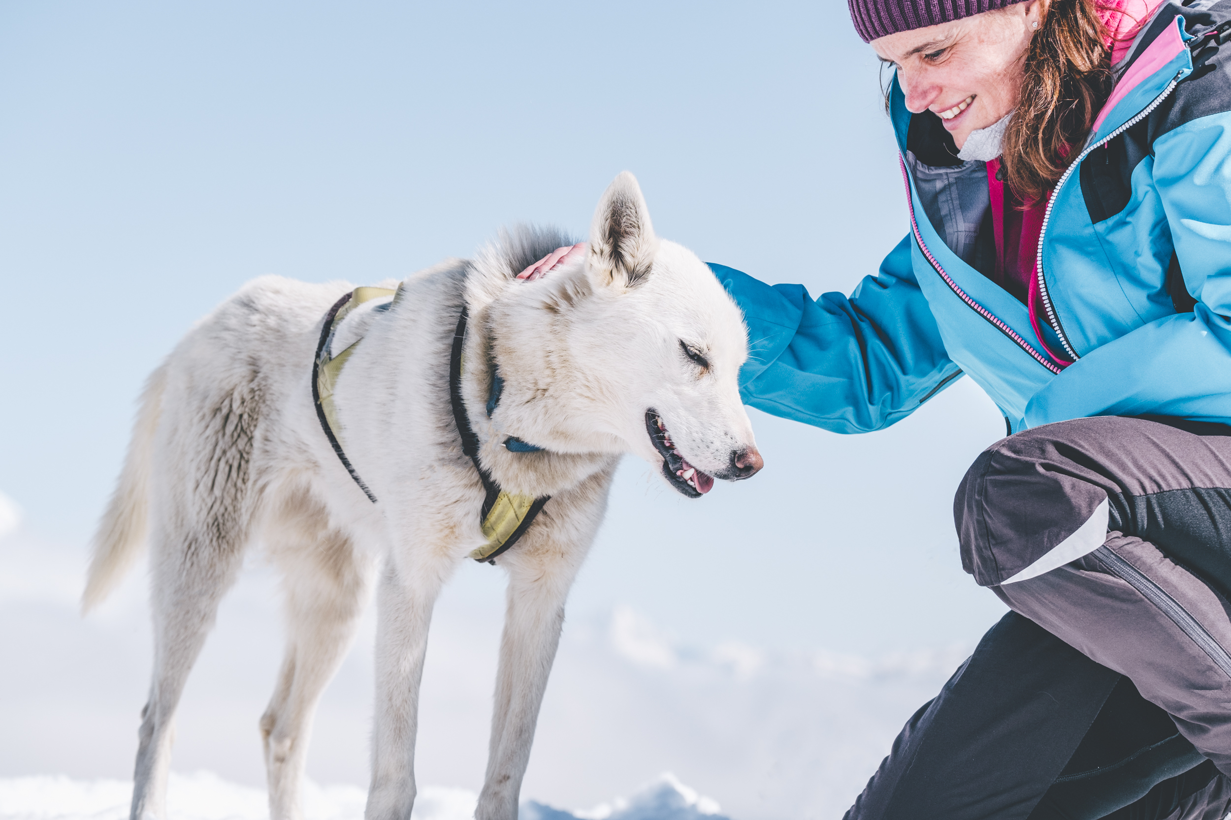 Vous pouvez prendre des photos et le/la musher* prend également des photos de vous. Les photos sont gratuites. Après l’événement, vous recevrez toutes les photos de notre part, non retouchées, sur votre adresse e-mail avec le service gratuit d’envoi de données WeTransfer (Une fois les fichiers téléchargés, le destinataire reçoit un e-mail avec un lien vers WeTransfer, d’où il peut télécharger les fichiers. Veuillez noter que les fichiers ne sont stockés par WeTransfer que pendant sept jours. Passé ce délai, le téléchargement des contenus n’est plus possible).
